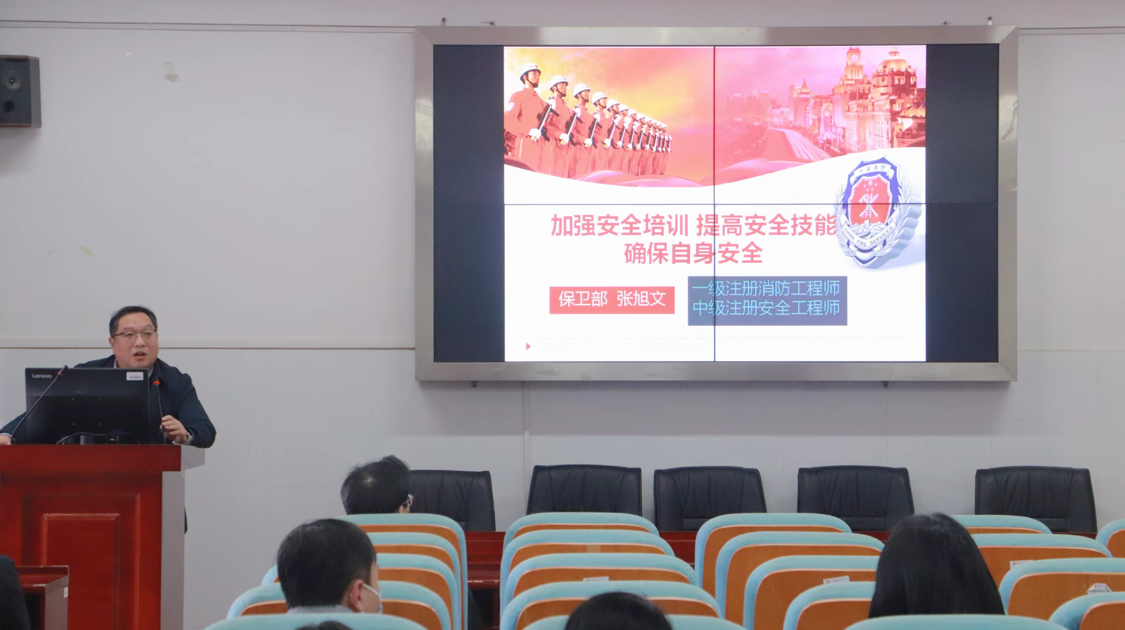 11月20日下午,365英国上市集团特邀公司保卫工作部消防科科长张旭文,为公司全体教职工开展了一场消防安全专题教育讲座。讲座由公司党委书记丁凯主持。